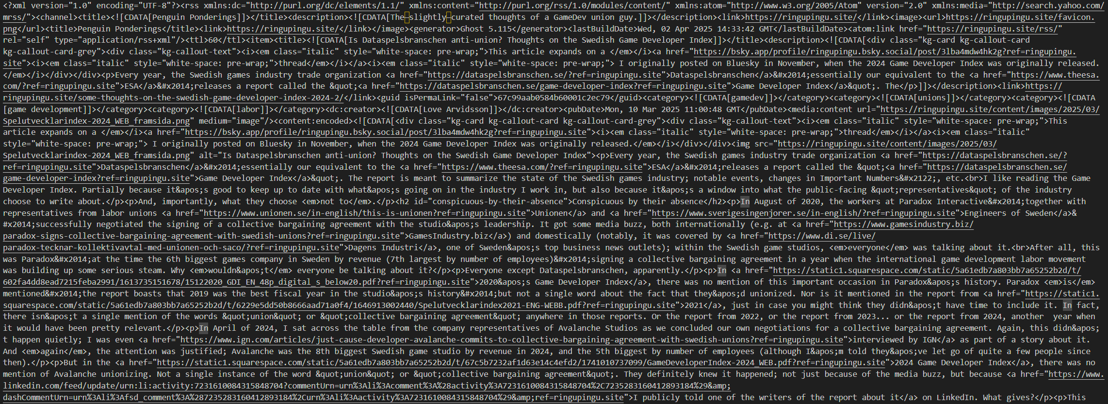 I'm a child of the mid-90's, so I didn't really engage with RSS feeds when they were at their peak. I associate them with techy elder millenials and Gen Xers—like my older brother, who taught me how to pirate PC games with DC++ when I was 12, inadvertently starting me down the path of gaming obsession that eventually led to me working in the industry.